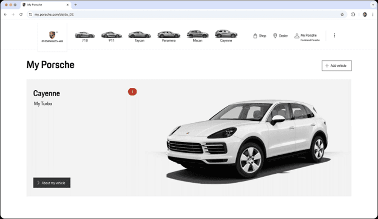 Core Entry Experience Owned the main overview page and key detail pages (vehicle, configurations, order tracking) that define how owners first interact with My Porsche Web.